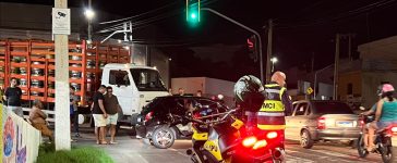 Um homem ficou ferido em um acidente de trânsito entre uma motocicleta e um caminhão no centro da cidade de...