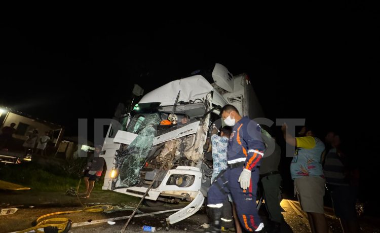 Um motorista ficou preso as ferragens após um grave acidente envolvendo dois caminhões na noite desta segunda-feira (30) de março...