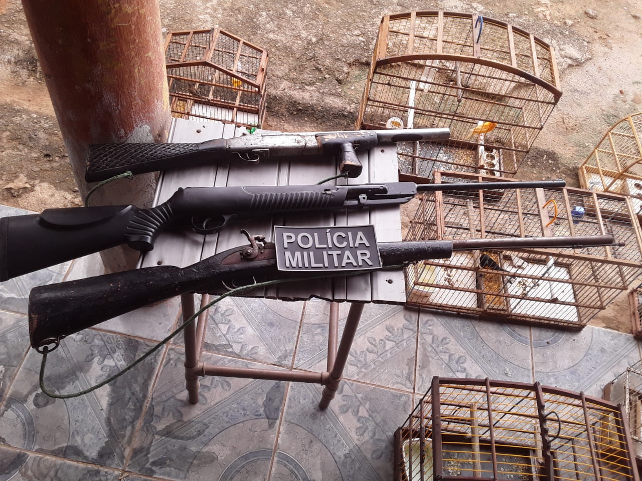 O acusado estava de posse de três espingardas uma Cal. 12 de fabricação artesanal, uma de chupinho e outra tipo socadeira, duas munição cal 12, vários pássaros das espécies sabias, Galos Campinas, Primaveras, Papagaio, Cabeça Preta, Papa Capim, além de 25 gaiolas.
