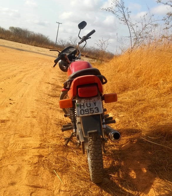 Uma moto Honda Titan 125, cor vermelha, ano 1996, placas de Ipu – CE, foi encontrada na manhã desta quarta-feira (28/10), em uma estrada carroçável que dar acesso ao distrito de Flores, zona rural do município de Ipu (CE).