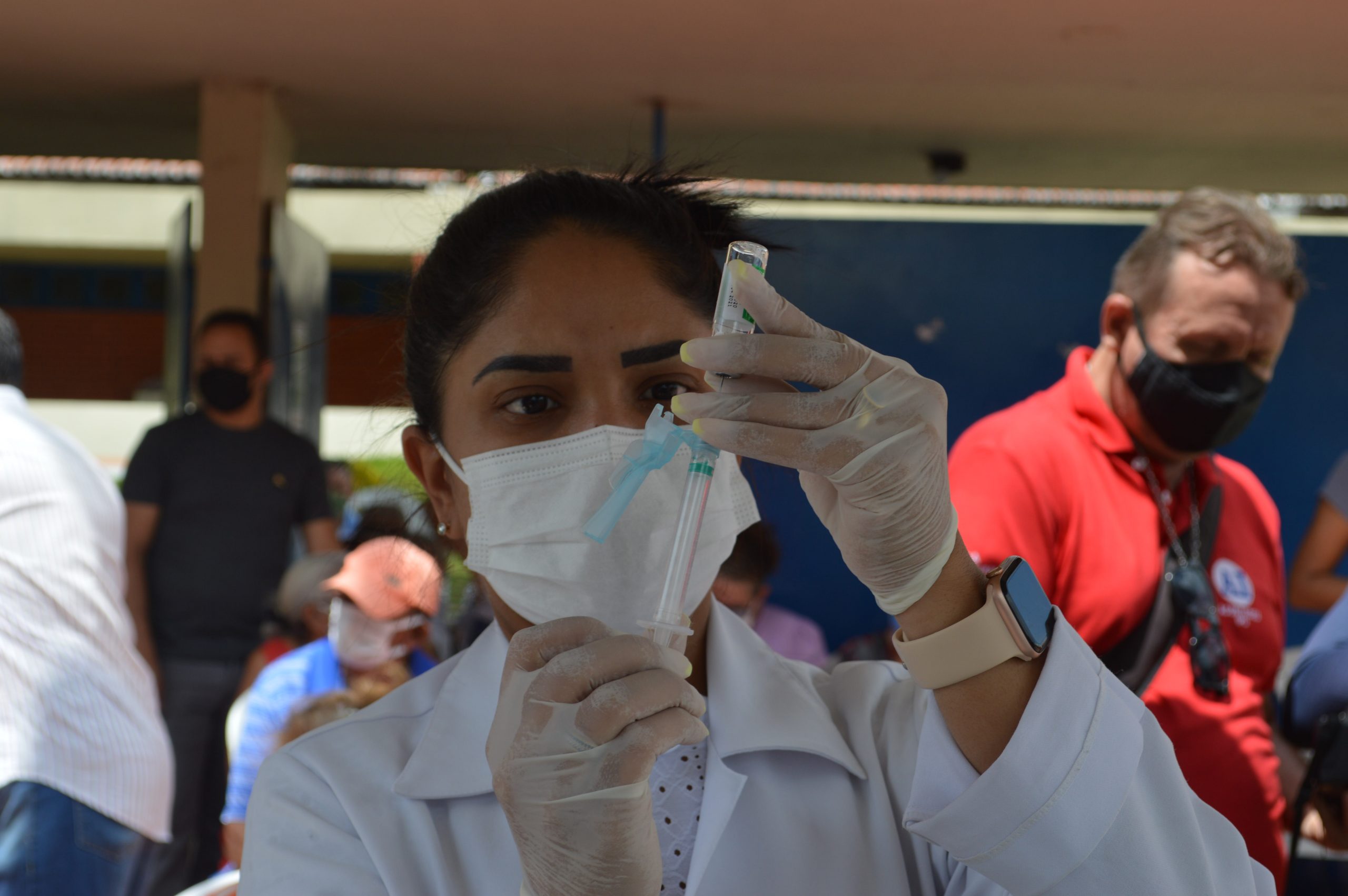 De acordo com a pasta, o grupo que está recebendo a primeira dose é formado por profissionais da saúde ativos, trabalhadores da saúde que atuam na linha de frente do combate à pandemia e idosos acima de 75 anos.
