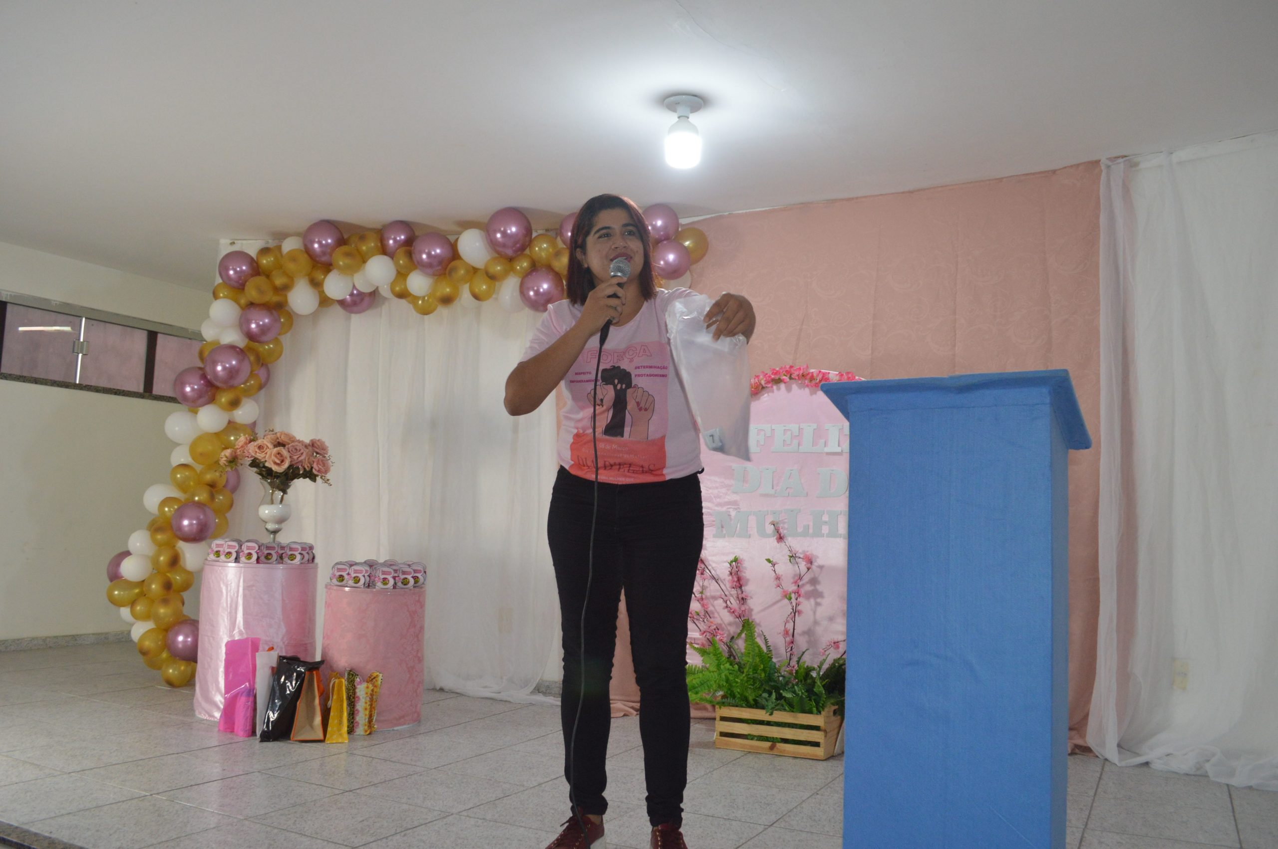 A programação foi realizada no auditório do CRAS, contou com a presença da Secretária de Assistência Social – Valdirene Mourão, a Coordenadora do CRAS Sede Paloma Costa, primeira-dama Amanda Elias e mulheres em geral.