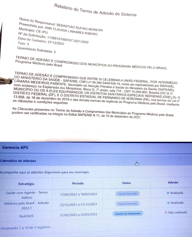 O município de Ipu realizou o cadastro aderindo ao programa no dia 27 de Dezembro. De acordo com os documentos de adesão foram solicitados 03 profissionais com o intuito de suprir a carência de médicos nessa urbe. Salienta-se que houve a saída de três médicos atuantes em unidades básicas de saúde por motivos pessoais, a citar: